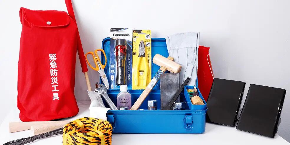 高圧ガス移動時に必須の緊急防災工具。4種類の防災工具セットを製造販売しています。